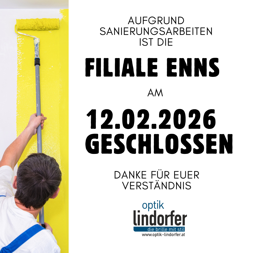 Zeige grösseres Bild Wegen Umbau geschlossen Unsere Filiale in Enns ist derzeit leider wegen Umbau geschlossen. Kerstin Lainer2026-02-10T14:23:56+01:00 Share This Story, Choose Your Platform! FacebookXRedditLinkedInWhatsAppTumblrPinterest Ähnliche Artikel Weihnachten bei Optik Lindofer Weihnachten bei Optik Lindofer Dezember 9th, 2025 Gleitsichtwochen bei Optik Lindorfer Gleitsichtwochen bei Optik Lindorfer Oktober 30th, 2025 „Still mit Stil“ – unser neuer Wohlfühltermin in Enns „Still mit Stil“ – unser neuer Wohlfühltermin in Enns September 23rd, 2025 Wir machen Urlaub Wir machen Urlaub Juli 30th, 2025 Open House Sommerparty Open House Sommerparty Juli 23rd, 2025