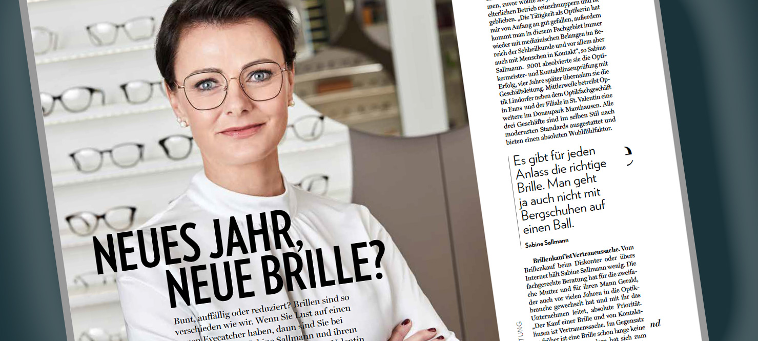 Theo Hörner2022-11-25T10:46:15+01:00INTERVIEW der Zeitung OBERÖSTERREICHERIN mit unserer Chefin SABINE SALLMANN. Bunt, auffällig oder reduziert? Brillen sind so verschieden wie wir. Wenn Sie